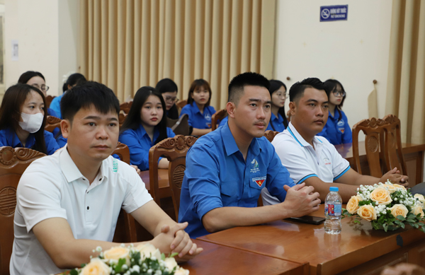 Các đại biểu chia sẻ với các bạn đoàn viên, thanh niên, gương thanh niên khởi nghiệp. |