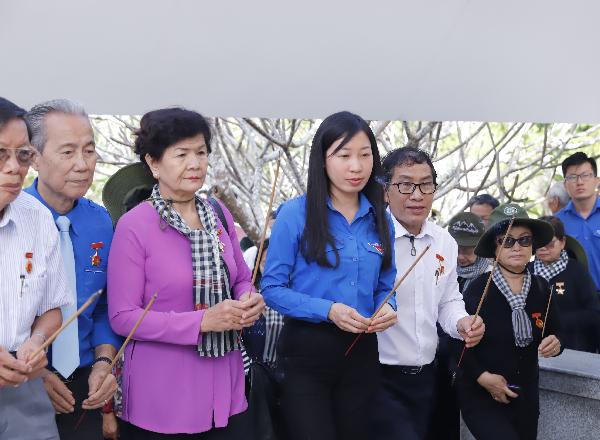 Các đại biểu Câu lạc bộ và Tỉnh Đoàn thắp hương tại khu tưởng niệm. |