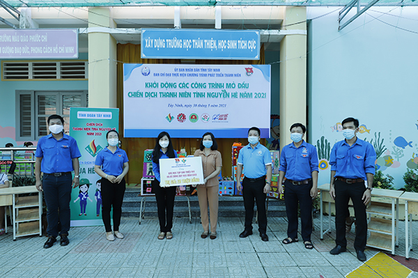 Chiến dịch Mùa hè xanh được khởi động với phần việc tặng 09 góc học tập và 30 thùng đồ dùng dạy học trị giá 20 triệu đồng tại Trường Mẫu giáo Phước Chỉ và Trường Mẫu giáo Phước Bình, thuộc thị xã Trảng Bàng.