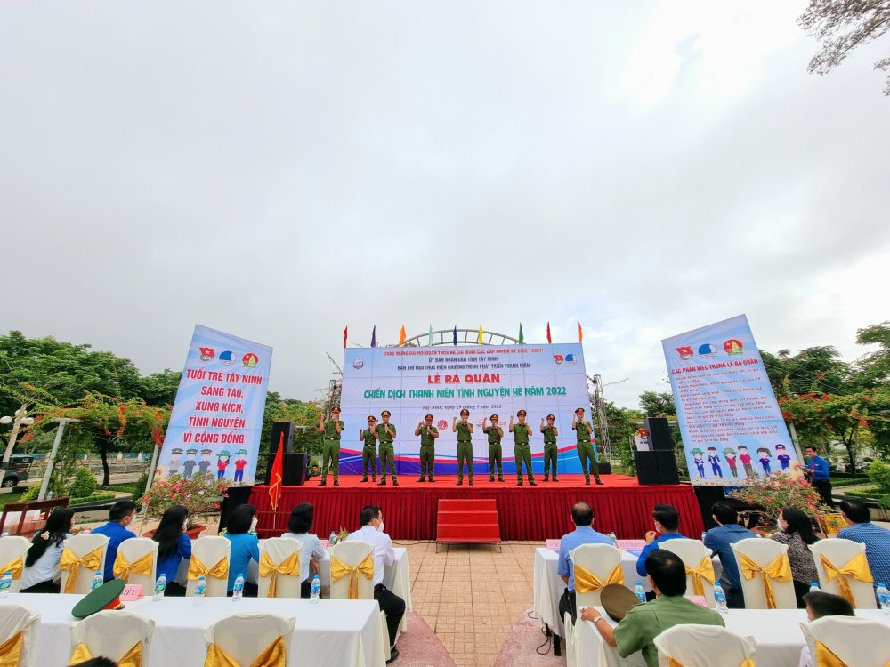 Tại buổi lễ, Trưởng Ban Chỉ đạo thực hiện Chiến lược Phát triển thanh niên tỉnh Tây Ninh giai đoạn 2021-2030 - Ông Võ Đức Trong trao cờ phát động ra quân Chiến dịch Thanh niên tình nguyện hè năm 2022 cho Ban Chỉ huy Chiến dịch - Tỉnh đoàn Tây Ninh. Bí thư Tỉnh đoàn, Đại diện Ban chỉ huy - Ông Nguyễn Thanh Tùng phất cao ngọn cờ lệnh phát lệnh ra quân Chiến dịch Thanh niên tình nguyện hè năm 2022, kêu gọi sự tham gia tích cực của lực lượng thanh niên trên toàn tỉnh.