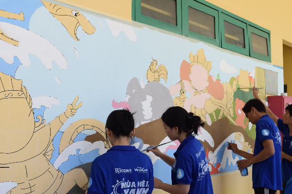 Trường mầm non Hướng Dương xã Tân Phong có hơn 20 bạn sinh viên tình nguyện tổ chức sơn, vẽ tranh cổ tích với nhiều nội dung, hình ảnh sáng tạo, sinh động, các bạn sinh viên tình nguyện ở đây đến từ trường Đại học Kiến trúc Thành phố Hồ Chí Minh. Hoạt động sẽ kéo dài từ 13/7 đến ngày 7/8/2022.