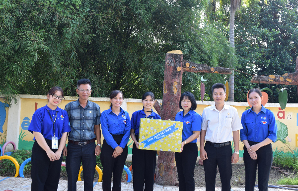 Chị Nguyễn Thị Trúc Mai – Phó Bí thư Tỉnh Đoàn, Chủ tịch Hội LHTN Việt Nam tỉnh thăm hỏi, tặng quà và gửi những lời động viên đến các sinh viên tình nguyện tại Tại Trường mầm non Phạm Ngọc Thạch xã Tân Bình, huyện Tân Biên. |
