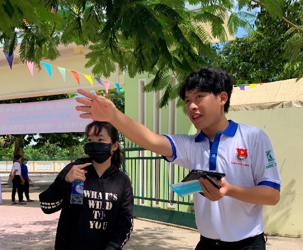 Đội hình thanh niên tình nguyện hỗ trợ thí sinh. |