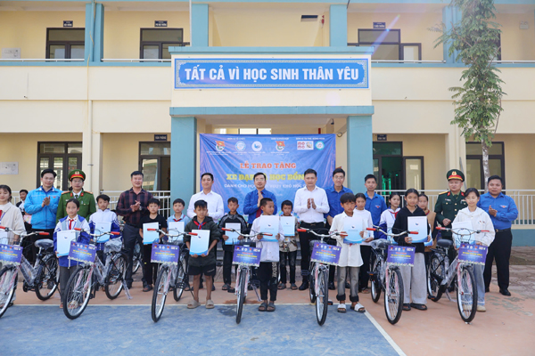 Trao xe đạp, học bổng và nhu yếu phẩm cho các em học sinh. |