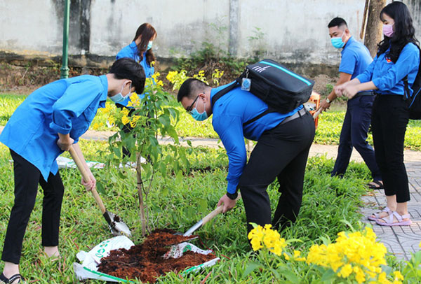 Các bạn trẻ TP.HCM trồng cây xanh trong Tháng thanh niên hưởng ứng mục tiêu trồng mới 1 tỉ cây xanh cùng cả nước giai đoạn 2021-2025 - Ảnh: Q.LINH |
