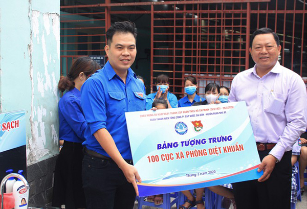 Dịp này, Đoàn Tổng Công ty Cấp nước Sài Gòn (SAWACO) cũng khánh thành công trình bồn nước sạch rửa tay tại Trường Tiểu học Nguyễn Trực (xã Phú Xuân, huyện Nhà Bè). Công trình thể hiện sự sáng tạo, trách nhiệm với cộng đồng của tuổi trẻ Sawaco khi thiết kế bồn rửa dùng chân để mở nước rửa tay, thay vì dùng tay mở nước như thông thường nhằm tránh nguy cơ lây nhiễm chéo khi sử dụng.