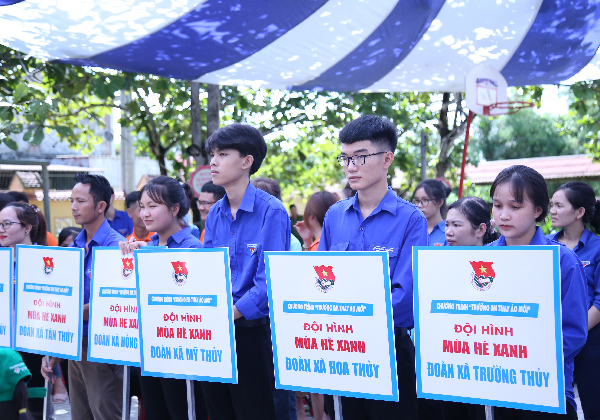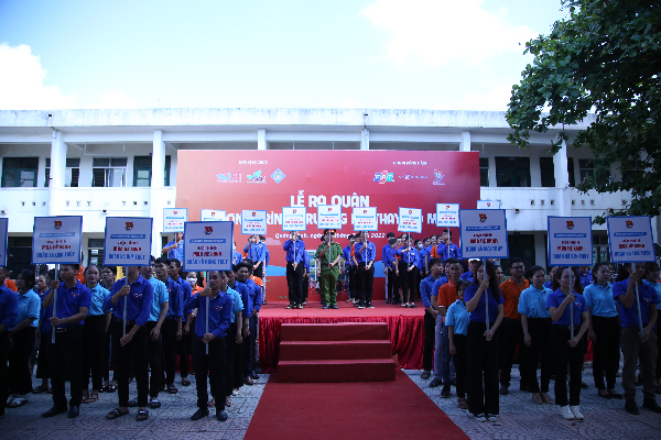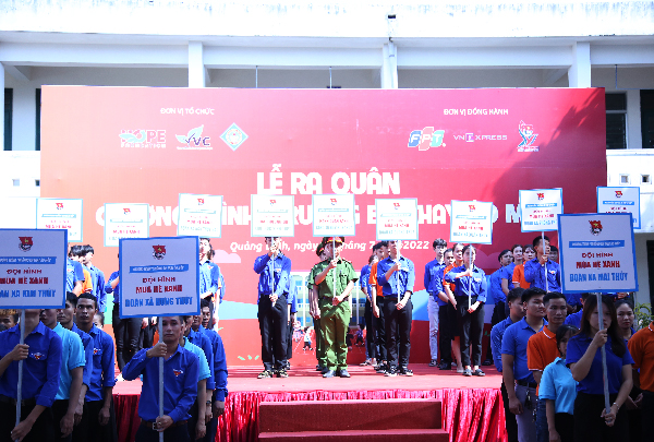 Các đại biểu và các đội hình thanh niên tình nguyện ra quân chương trình. |