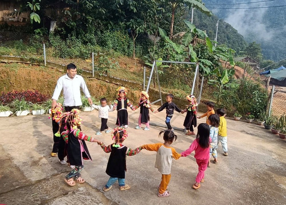 Không chỉ ở lớp, thầy còn đến từng hộ gia đình để vận động phụ huynh cho con đi học, giải thích về tầm quan trọng của giáo dục mầm non. Với những người dân còn chưa quen với khái niệm “trường lớp”, thầy chính là cầu nối – là người gieo niềm tin vào tương lai.