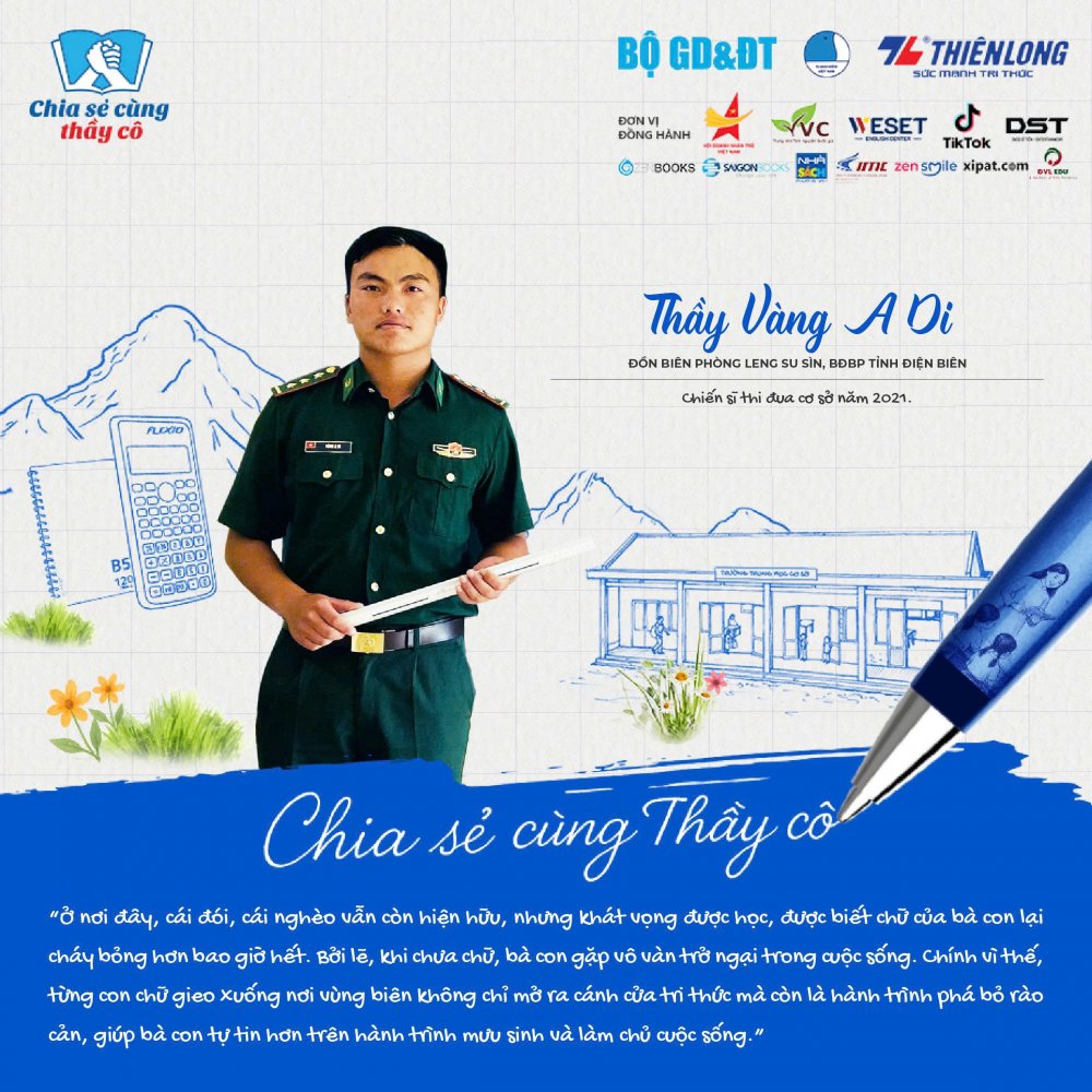 "Tôi tin rằng, mỗi con chữ được gieo xuống, dù là trên trang giấy trắng hay trên mảnh đất cằn khô của cuộc sống, đều là một hạt giống của hy vọng. Và rồi, những hạt giống ấy sẽ nảy mầm, lớn lên thành những ước mơ, thành tương lai, thành những đổi thay diệu kỳ mà chỉ tri thức mới có thể đem lại”, Thượng uý Vàng A Di chia sẻ.
