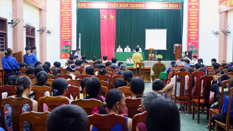 Phiên tòa giả định của sinh viên thu hút đông đảo người dân xã Hiệp Hòa.