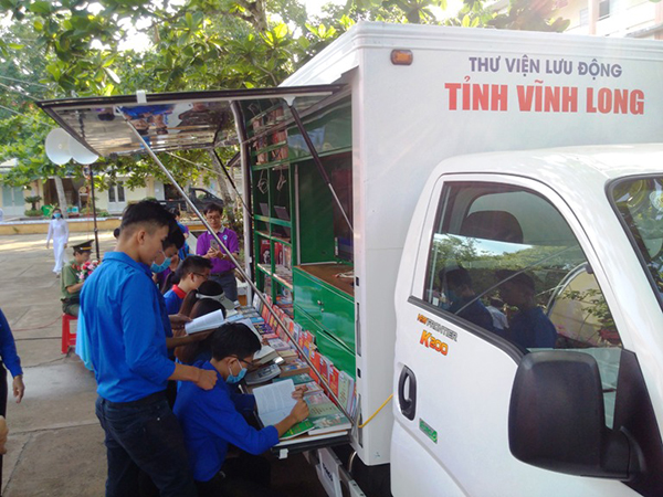 Đoàn viên thanh niên, học sinh sinh viên tham gia đọc sách thư viện sách lưu động và hướng dẫn sử dụng thư viện điện tử Ebook. |