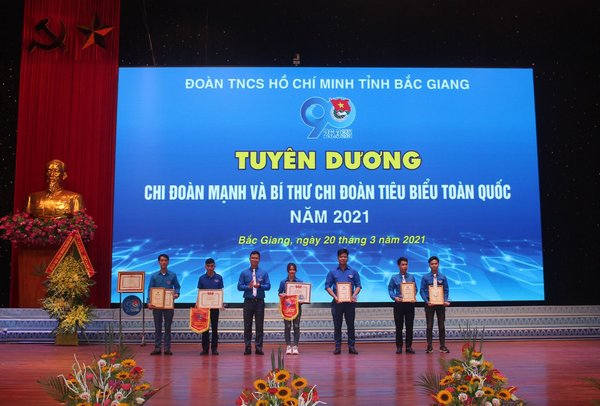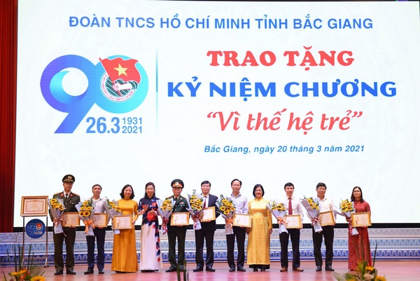 Tại buổi lễ, Đoàn TNCS Hồ Chí Minh tỉnh Bắc Giang vinh dự được đón nhận Bằng khen của Thủ tướng Chính phủ; 21 cá nhân vinh dự được BCH Trung ương Đoàn trao tặng kỷ niệm chương “Vì thế hệ trẻ”; 12 cá nhân, tập thể có thành tích xuất sắc trong công tác đoàn và phong trào thanh thiếu nhi giai đoạn 2016-2020 được Ban Bí thư trung ương Đoàn tặng Bằng khen; 02 chi đoàn, 04 bí thư tiêu biểu trong toàn tỉnh được Ban Bí thư Trung ương Đoàn tuyên dương; 15 danh nghiệp, tổ chức thường xuyên đồng hành, hỗ trợ tổ chức Đoàn được Tỉnh đoàn Bắc Giang tri ân.