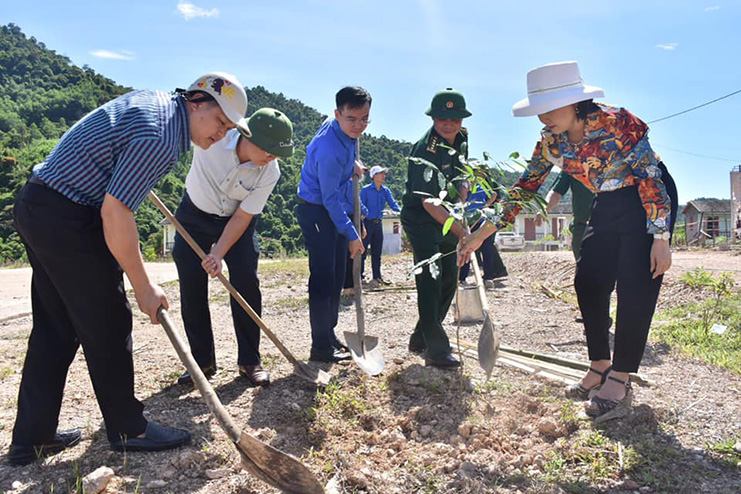 Tỉnh đoàn, Bộ Chỉ huy Biên phòng tỉnh và UBND huyện Hương Khê hỗ trợ trồng 100 cây xà cừ trên tuyến đường vào bản mới |