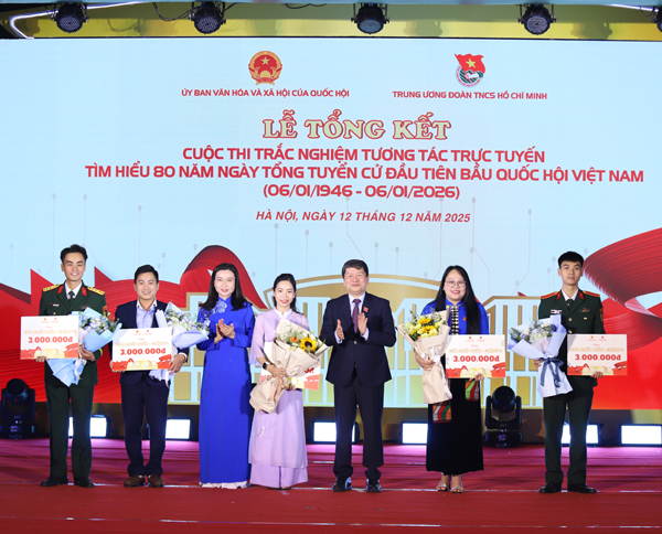 Tại Lễ tổng kết, Ban Tổ chức đã trao bằng khen tặng các thí sinh xuất sắc trong Cuộc thi trắc nghiệm tương tác trực tuyến “Tìm hiểu về 80 năm Ngày Tổng tuyển cử đầu tiên bầu Quốc hội Việt Nam" cũng như các tập thể, cá nhân tiêu biểu tích cực tham gia, đóng góp vào công tác tổ chức, góp phần vào thành công của Cuộc thi.