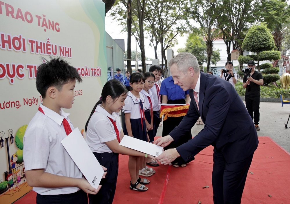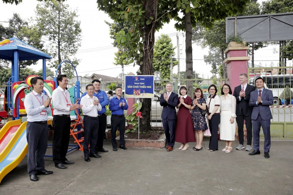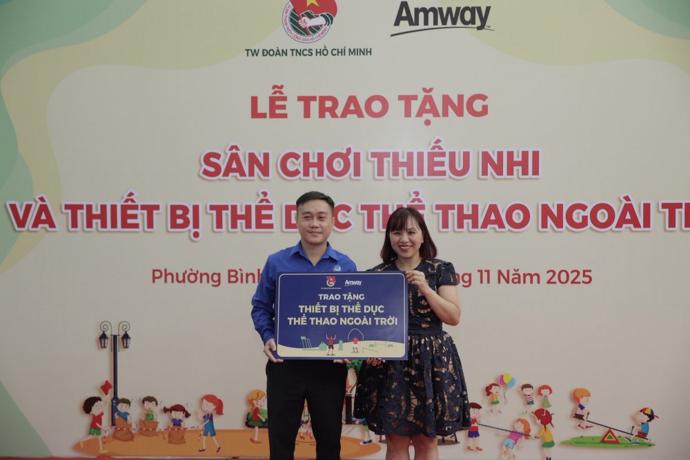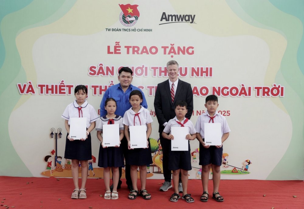 Trong khuôn khổ hợp tác, phối hợp tổ chức triển khai các hoạt động an sinh xã hội năm 2025, Công ty TNHH Amway Việt Nam đã đồng hành cùng Trung ương Đoàn TNCS Hồ Chí Minh triển khai một số hoạt động cộng đồng, cụ thể: Triển khai trao tặng 2 điểm sân chơi thiếu nhi, 1 điểm các dụng cụ tập thể dục thể thao ngoài trời và 10 suất học bổng khuyến khích học tập cho học sinh trên địa bàn phường Bình Dương, TP.HCM.