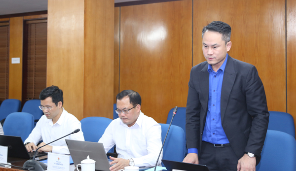 Anh Nguyễn Kim Quy, Uỷ viên BTV Trung ương Đoàn, Phó Chủ tịch Thường trực Trung ương Hội LHTN Việt Nam chia sẻ tại hội nghị. |