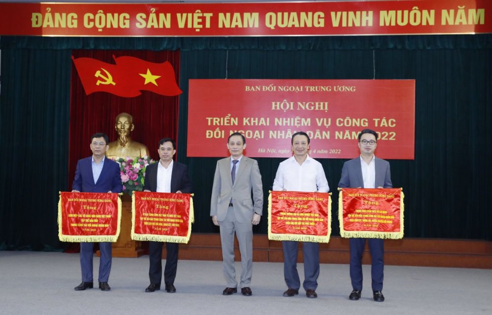 Nhân dịp này, Ban Đối ngoại Trung ương đã tặng cờ thi đua cho 04 đơn vị dẫn đầu trong công tác đối ngoại nhân dân năm 2021 gồm: Trung ương Đoàn TNCS Hồ Chí Minh, Liên Hiệp các tổ chức hữu nghị Việt Nam, Ủy ban Trung ương Mặt trận Tổ quốc Việt Nam và Phòng Thương mại và Công nghiệp Việt Nam.