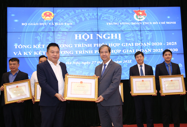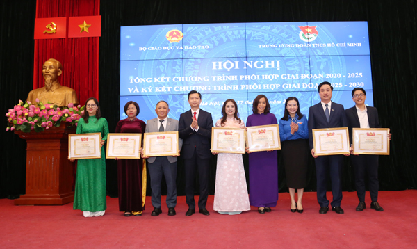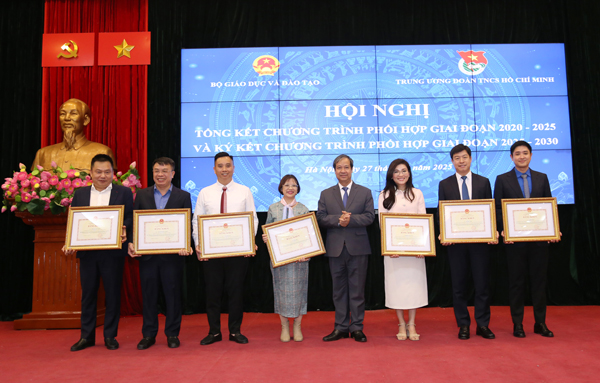 Dịp này, Bộ trưởng Bộ GD-ĐT tặng bằng khen cho những cá nhân có thành tích xuất sắc trong công tác triển khai chương trình phối hợp giữa Bộ GD-ĐT và T.Ư Đoàn giai đoạn 2020 – 2025; T.Ư Đoàn trao Kỷ niệm chương Vì thế hệ trẻ và trao bằng khen cho những cán bộ Bộ GD-ĐT có đóng góp xuất sắc trong phong trào thanh niên.
