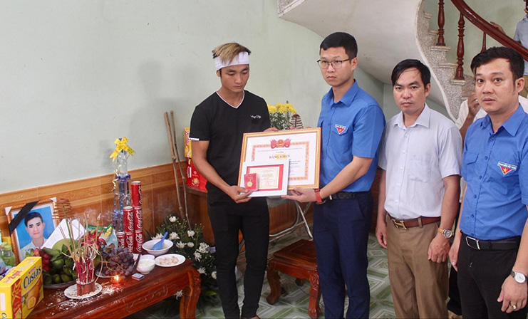Ngày 22/9, thừa ủy quyền của Trung ương Đoàn, anh Thân Trung Kiên - Bí thư Tỉnh đoàn, Chủ tịch Hội LHTN tỉnh Bắc Giang đến thăm, động viên gia đình anh Giáp Văn Tuyền (22 tuổi) - đoàn viên Chi đoàn thôn Hà Phú 12, xã Tam Dị, huyện Lục Nam, tỉnh Bắc Giang và trao huy hiệu “Tuổi trẻ dũng cảm” của Trung ương Đoàn TNCS Hồ Chí Minh, Bằng khen của Ban Chấp hành Tỉnh đoàn Bắc Giang cho thân nhân anh Tuyền.