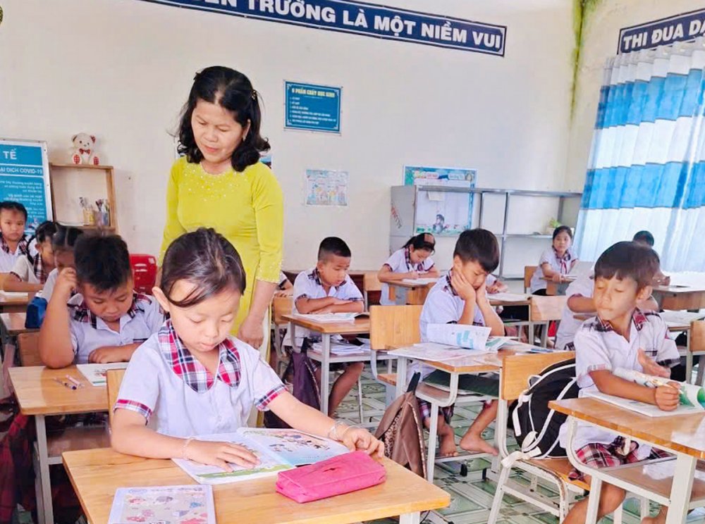 Trong suốt 32 năm công tác, có đến 16 năm cô dạy lớp ghép, nơi một lớp học có nhiều độ tuổi, nhiều trình độ, thậm chí có cả học sinh khuyết tật học hòa nhập. Có em chưa từng học mẫu giáo, khi vào lớp 1 còn chưa cầm vững cây bút, đánh vần từng chữ cũng khó. Những giờ lên lớp của cô vì thế không chỉ là dạy kiến thức, mà còn là hành trình kiên nhẫn và yêu thương. Cô thường kể chuyện, hát cùng các em, chia sẻ từng bữa ăn, từng niềm vui nhỏ bé để giúp các em có động lực đến trường. “Ở lớp, tôi không chỉ là cô giáo, mà còn là người mẹ thứ hai của các em,” cô nói, ánh mắt rạng ngời giữa nắng vàng vùng biên.