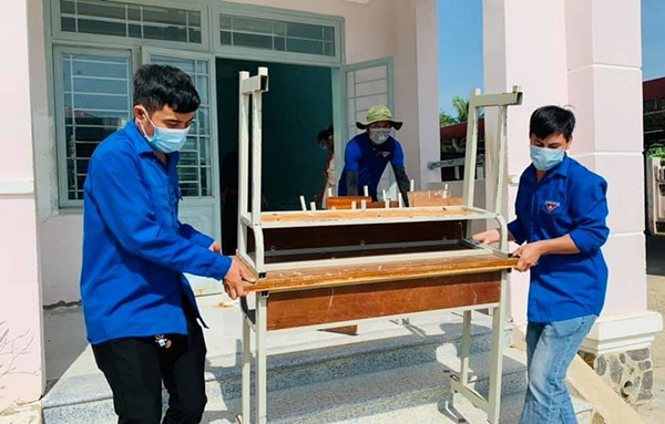 ĐVTN tham gia dọn dẹp chuẩn bị khu cách ly tập trung. |
