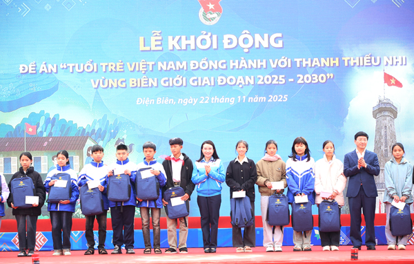 Được biết, “Hành trình đồng hành với học sinh biên giới” hướng đến việc hỗ trợ học sinh bằng các hoạt động thiết thực như trao tặng dụng cụ học tập, trang bị thiết bị phục vụ học trực tuyến, chăm sóc sức khỏe, hướng dẫn kỹ năng sống – kỹ năng số. Tại buổi lễ, Trung ương Đoàn công bố các nội dung trọng tâm của Hành trình và trao tặng 30 suất học bổng, 200 áo ấm cùng nhiều phần quà hỗ trợ khác.