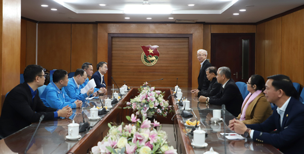 Tiếp đoàn có anh Nguyễn Tường Lâm, Bí thư Trung ương Đoàn, Chủ tịch Trung ương Hội LHTN Việt Nam; anh Nguyễn Kim Quy, Uỷ viên BTV, Trưởng Ban Công tác Thanh thiếu nhi Trung ương Đoàn, Phó Chủ tịch Thường trực Trung ương Hội LHTN Việt Nam; anh Cảnh Chí Quân, Phó trưởng Ban Công tác Thanh thiếu nhi Trung ương Đoàn; anh Nguyễn Duy Hưng, Chánh văn phòng Trung ương Hội LHTN Việt Nam.