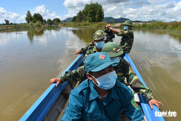 Đại tá Phạm Văn Phong - chính ủy Bộ chỉ huy BĐBP tỉnh An Giang - cho biết tuyến biên giới An Giang giáp Campuchia kéo dài gần 100km, lực lượng Biên phòng đã thành lập 136 tổ công tác chốt chặn ven biên giới.