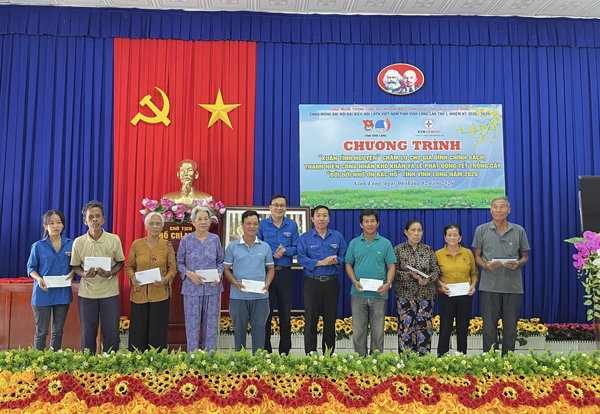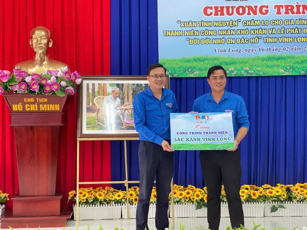 Tại chương trình, Tỉnh Đoàn - Hội LHTN Việt Nam tỉnh trao tặng 20 phần quà cho thanh niên công nhân, gia đình chính sách có hoàn cảnh khó khăn nhân dịp Tết Nguyên đán và trao tặng Đoàn Phường Trường Long Hòa 200 cây bằng lăng thái thực hiện công trình thanh niên “Sắc xanh Vĩnh Long” hưởng ứng Lễ phát động Tết trồng cây “Đời đời nhớ ơn Bác Hồ”, đây là công trình thanh niên “Sắc xanh Vĩnh Long” thứ 4 mà Tỉnh đoàn, Hội LHTN Việt Nam triển khai thực hiện.
