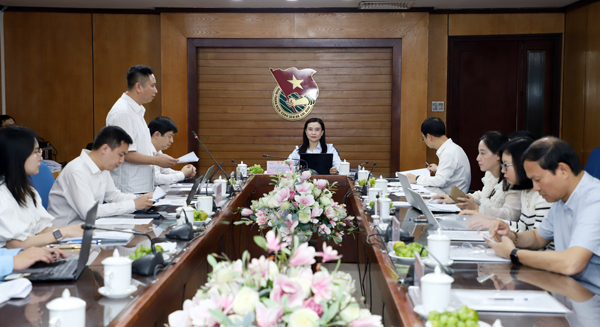 Chị Nguyễn Phạm Duy Trang, Bí thư Trung ương Đoàn, Chủ tịch Hội đồng Đội Trung ương, Chủ tịch Hội đồng xét chọn giải thưởng phát biểu tại buổi họp hội đồng. |