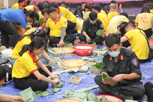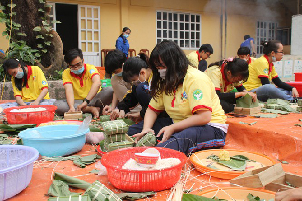 Dịp này, các bạn đoàn viên thanh niên, hội viên TPHCM cùng các chiến sỹ Trung đoàn Cảnh sát cơ động đã thực hiện gói và nấu 1.000 phần bánh chưng để gửi tặng người dân, thanh thiếu nhi có hoàn cảnh khó khăn.